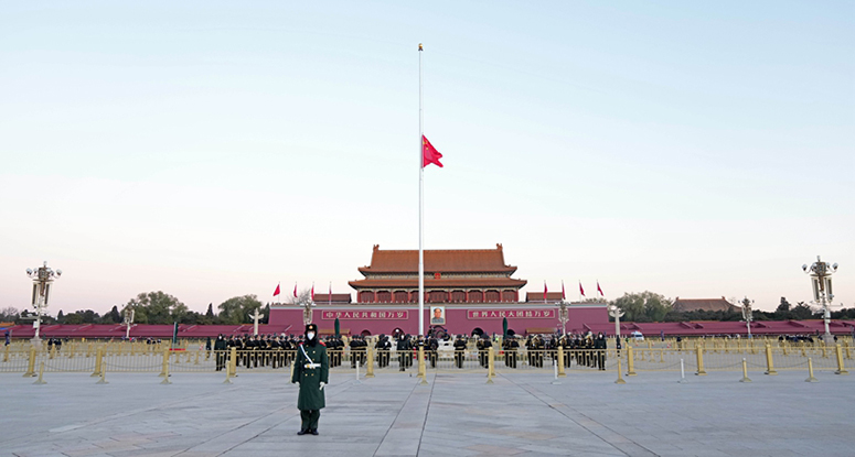 12月5日,江澤民同志的遺體安臥在鮮花翠柏叢中,身上覆蓋著鮮紅的中國共產黨黨旗。新華社記者 謝環馳 攝