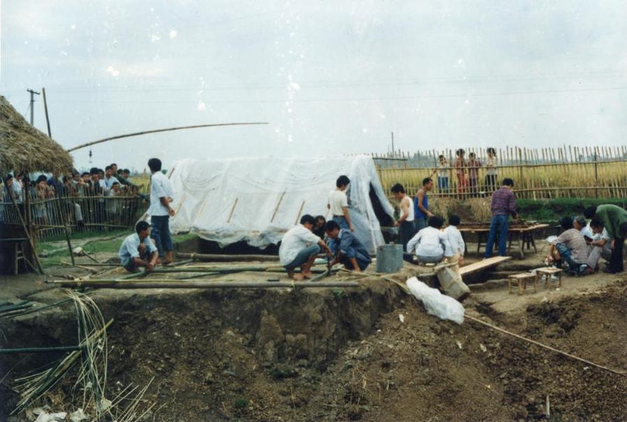 1986年,考古人員在三星堆考古發掘現場工作。新華社發(三星堆博物館供圖)