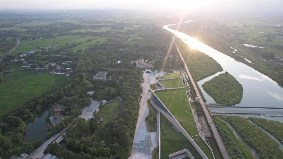 這是新建在鴨子河畔的三星堆博物館新館外景。新華社發(余嘉攝)
