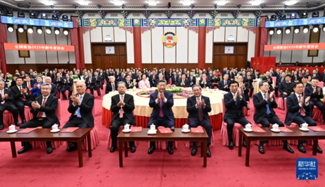 新華社北京12月31日電 中國人民政治協商會議全國委員會12月31日上午在全國政協禮堂舉行新年茶話會。黨和國家領導人習近平、李強、趙樂際、王滬寧、蔡奇、丁薛祥、李希、韓正等同各民主黨派中央、全國工商聯負責人和無黨派人士代表、中央和國家機關有關方面負責人以及首都各族各界人士代表歡聚一堂,共迎2025年元旦。