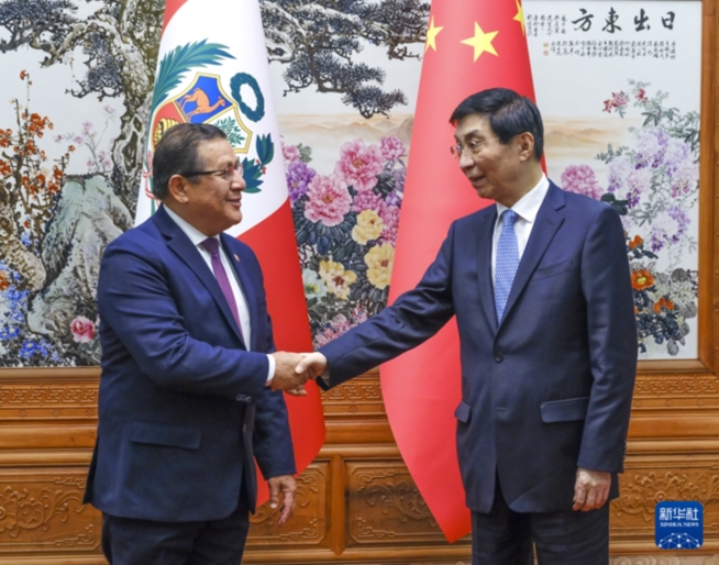 王滬寧表示,不久前,習近平主席赴秘魯出席亞太經合組織第三十一次領導人非正式會議并對秘魯成功進行國事訪問,開啟了中秘全面戰略伙伴關系的歷史新篇章。中方愿同秘方共同努力,推動中秘關系不斷取得更多成果,更好造福兩國人民。中國全國政協愿同秘方加強交流合作,為促進兩國在實現國家現代化道路上攜手前行作出貢獻。