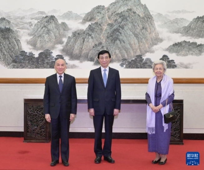 王滬寧會見柬埔寨國王西哈莫尼和太后莫尼列