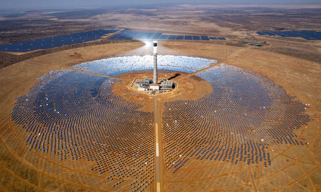 這是2024年8月20日在南非北開普省拍攝的由中國電建集團山東電建三公司承建的南非紅石100兆瓦塔式熔鹽光熱電站項目(無人機照片)。新華社記者張譽東 攝