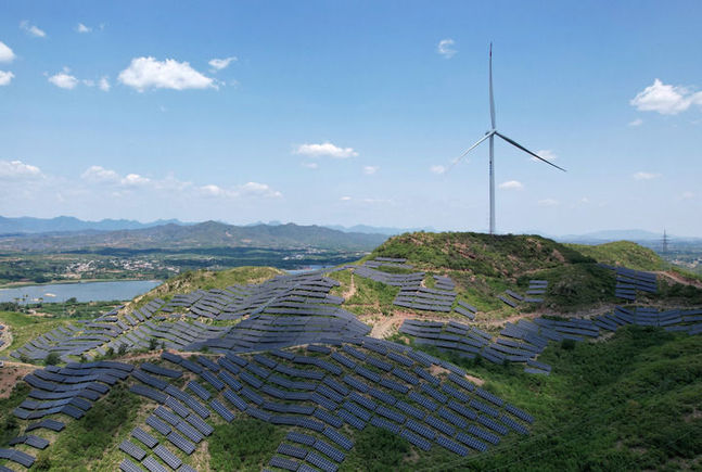 這是2025年6月16日拍攝的河北省贊皇縣院頭鎮曹家莊村附近的“風光互補”發電場(無人機照片)。新華社記者 楊世堯攝