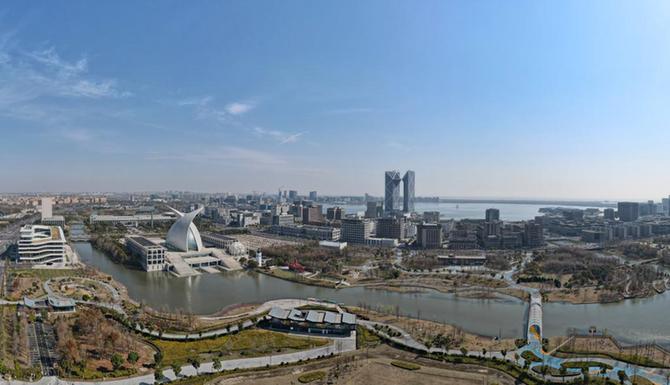 2025年3月19日拍攝的上海自貿試驗區臨港新片區滴水湖畔景色(無人機照片)。新華社記者方喆攝